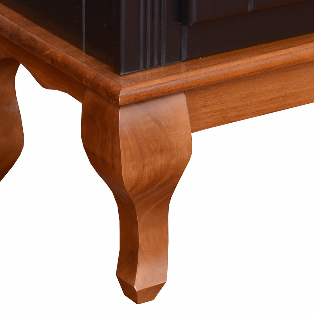 Os pequenos detalhes como os pés Luiz XV, apliques torneados de madeira e nas travessas frontais ranhuras trazem elegância a peça.
