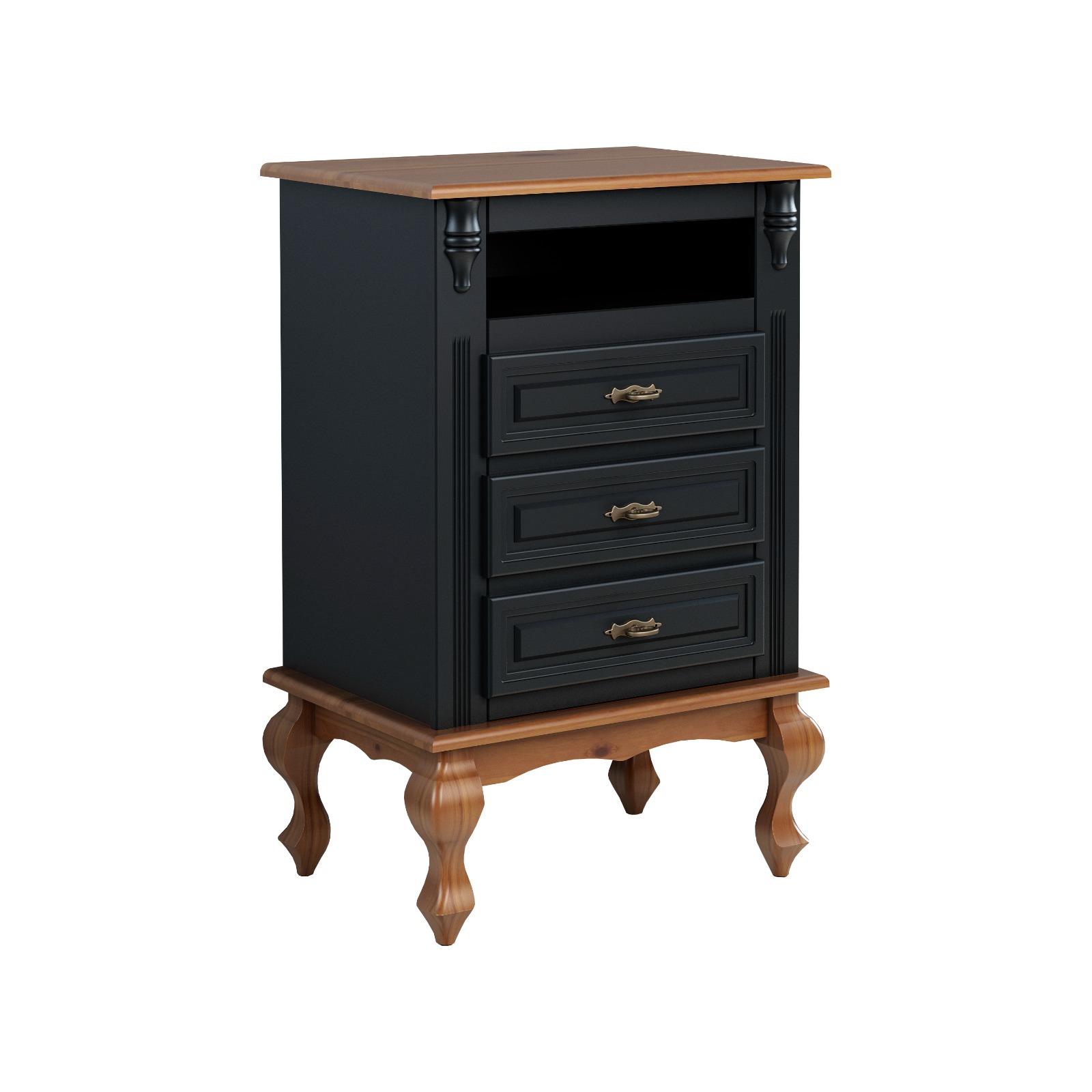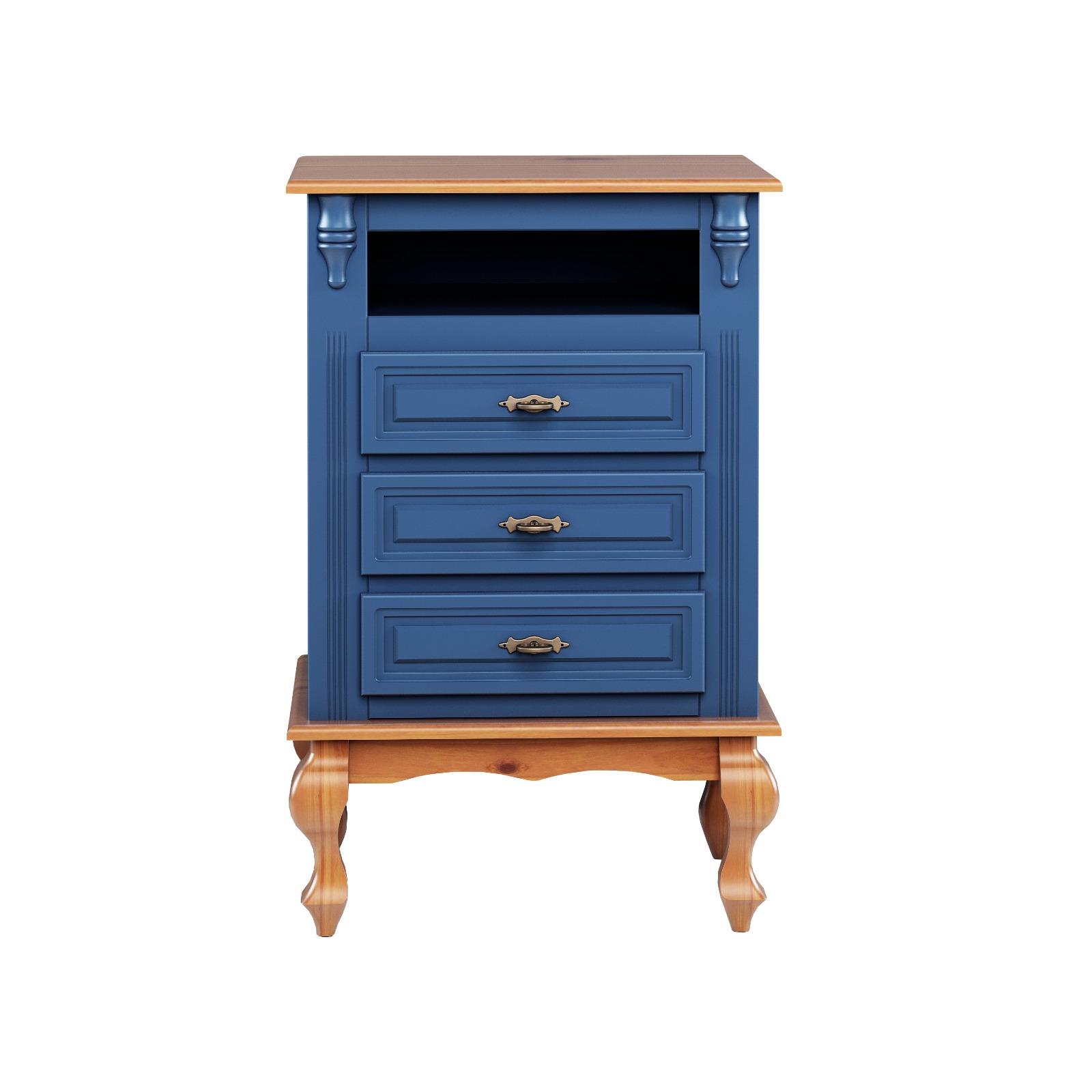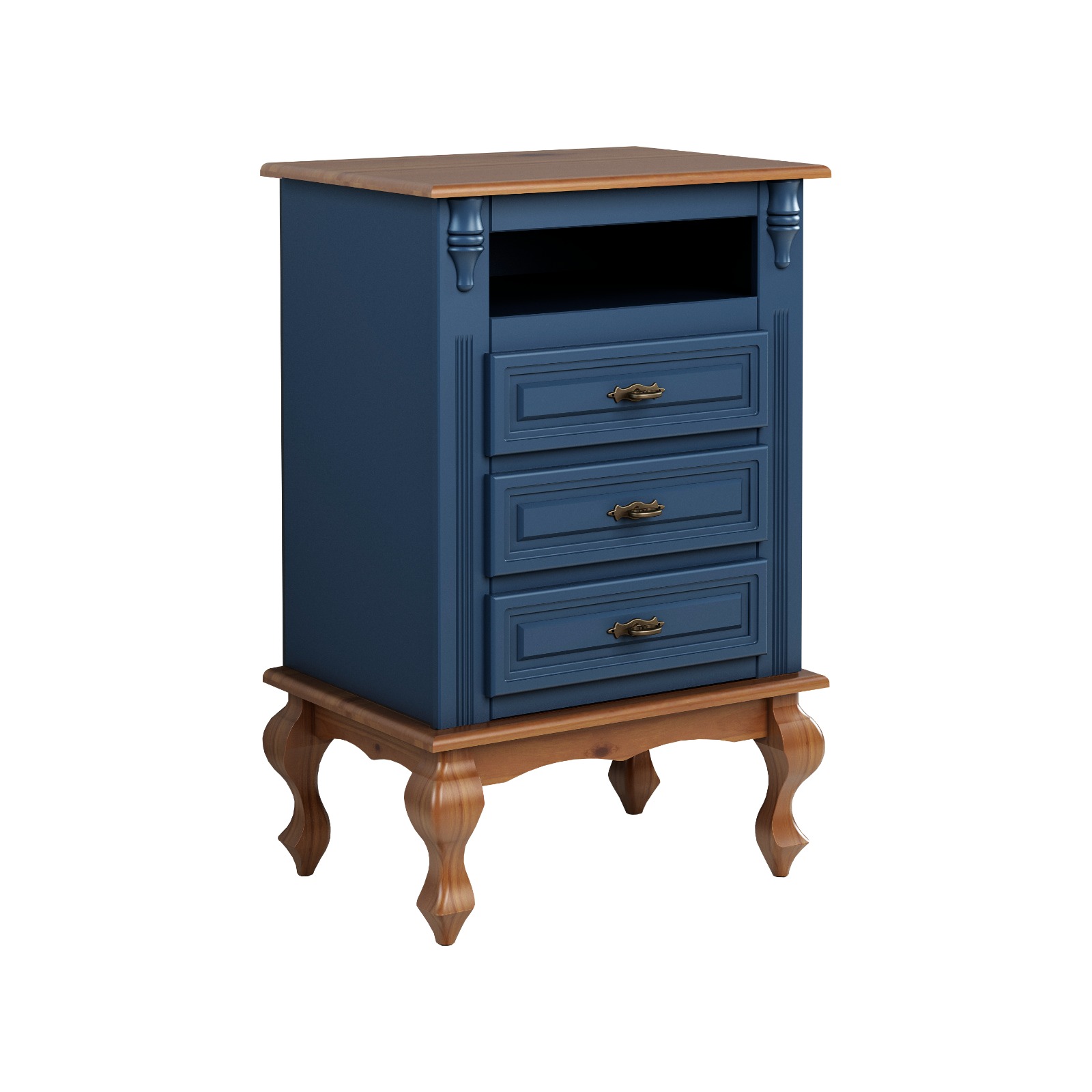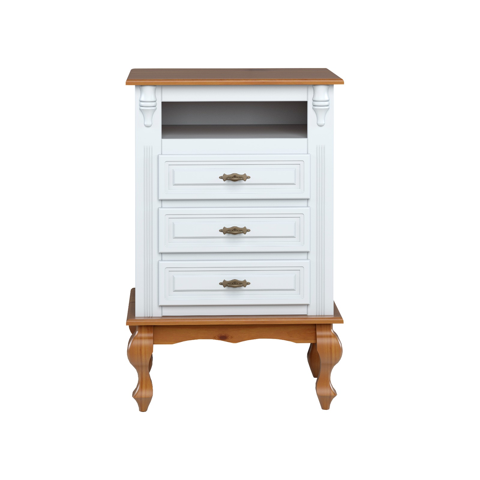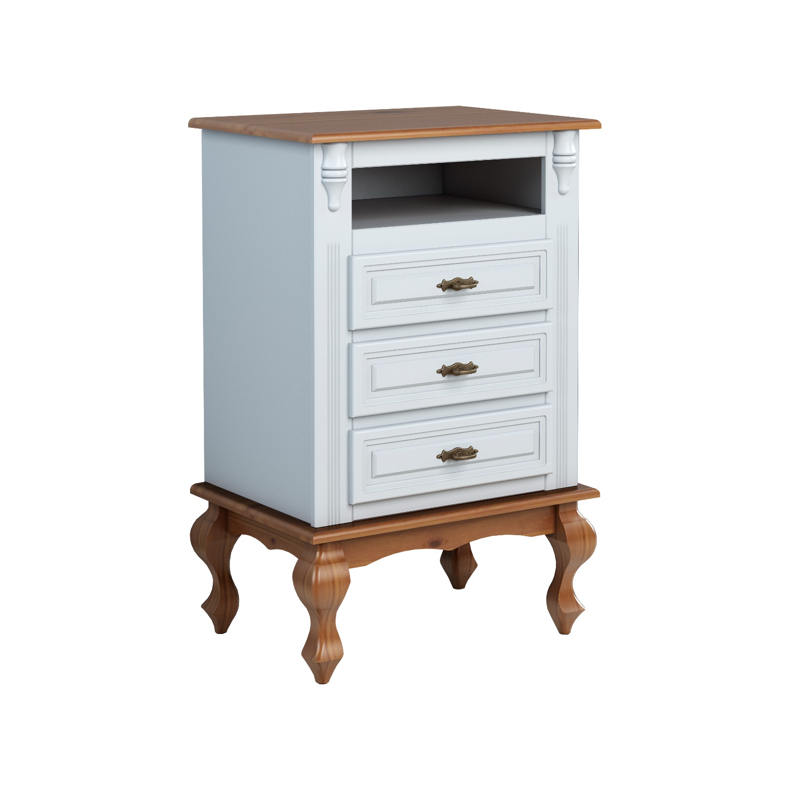 A Mesa de Cabeceira Pesaro 3 Gavetas 1 nicho da Incantare Móveis possui um design sofisticado e moderno , os pés no modelo Luiz XV, dão um toque mais elegante à peça.